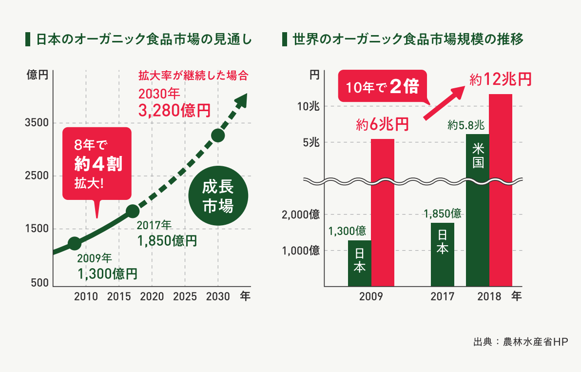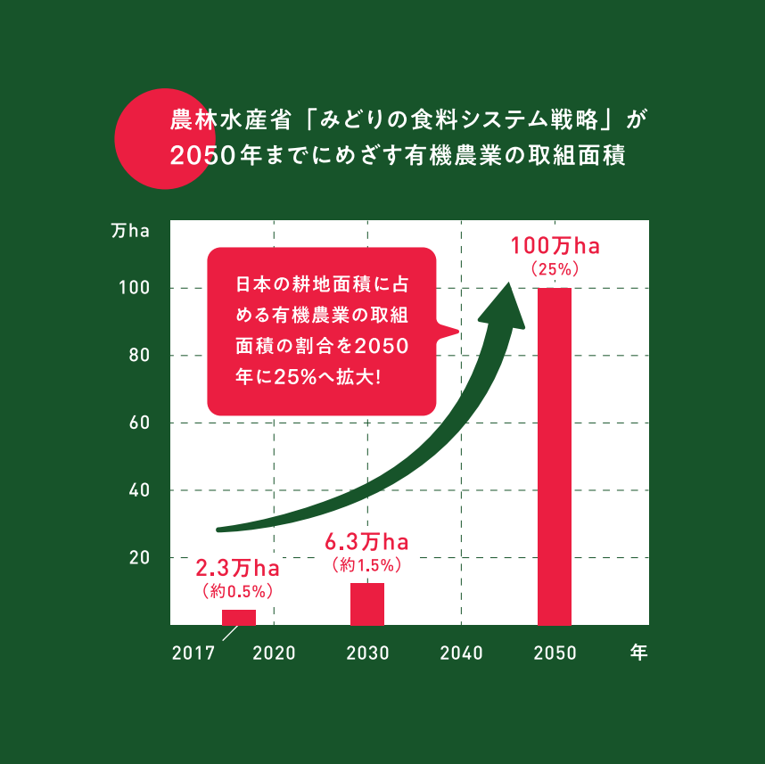 しかし近年、カーボンニュートラルや生物多様性などに資する、有機農業への取り組みに光が当たり、農林水産省も「みどりの食料システム戦略」を策定するなど、有機農業に対する期待は高まっています。