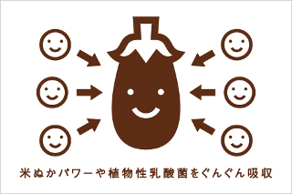 ぬか床に漬けた野菜は、塩分の作用で水分が抜け、その代わりに米ぬかに含まれる様々な栄養をぐんぐん吸収します。ビタミンなどの水溶性で熱に弱い栄養も、 加熱調理しない「ぬか漬け」なら効率よくとることができます!また、独特の旨みとともに植物性乳酸菌も体内にとり入れることができます!ぬか漬けは、ご飯にあうだけでなく、体にもとってもうれしい食べ物なんです。農薬を一切使用しない米ぬかを使用しているので、漬ける手にもやさしいですよね。