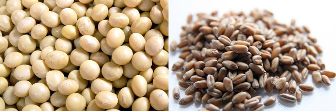 金沢大地の有機醤油はいたってシンプル。有機大豆も有機小麦も自社で栽培しています。初夏から晩秋は有機大豆を育て、同じ畑で冬から春は有機小麦を栽培します。2000年より有機大豆の後作として小麦栽培をはじめたことにより、大豆と小麦、どちらも単一生産者で用意できるようになりました。